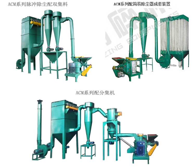 ACM氣流渦旋微粉機(jī):該微粉碎機(jī)適用于化工、食品、飼料、醫(yī)藥及中間體、煙草、農(nóng)藥(可濕性粉劑)、顏料、涂料、染料、陶瓷、色料、膠體、非金屬礦產(chǎn)及生物工程等行業(yè)的超微粉碎(如碳酸鈣、氧化鎂、氫氧化鋁、氧化鈰、酚醛樹脂、五鈉、云母等)