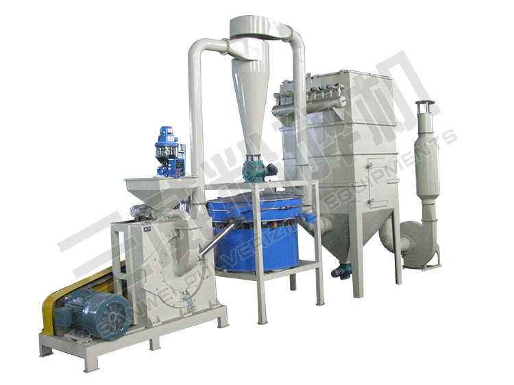 SFJ熱塑性塑料微粉磨是我廠自行研制而成的,能在常溫下對熱塑性塑料(如聚乙烯、聚氯乙烯、聚丙烯、PVE、 PBT、 EVA尼龍)的粉碎。該設備與低溫冷卻粉碎設備相比,具有能耗低、產品粒度均勻、操作方便等優點。是目前在常溫下加工塑料粉末的理想設備。該設備采用磨盤水冷與風冷結合,具有雙重冷卻功能,能常溫下完成連續粉碎加工。產品細度可達到150目以下,產量每小時達50公斤-200公斤。